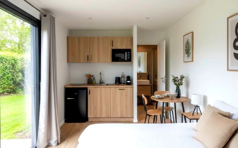 De nombreux particuliers choisissent de rentabiliser leur jardin en y installant un studio de location. Loué en courte durée (type Airbnb) ou à un étudiant sur l’année, ce type de projet peut générer des revenus intéressants. Bien conçu, le studio offre le confort nécessaire pour y vivre : kitchenette, salle d’eau, isolation renforcée, etc. Il peut aussi valoriser votre bien immobilier.