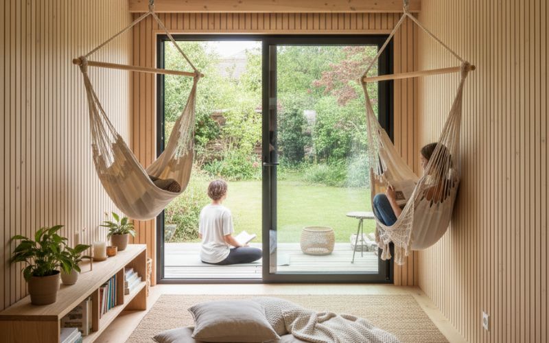 Pourquoi ne pas en faire un salon d’été, une salle de sport ou un espace bien-être ? Le studio de jardin se transforme aussi en lieu de loisirs, pour lire, faire du yoga, recevoir des amis ou simplement s’évader du quotidien. Une extension de votre cocon, sans en modifier la maison.