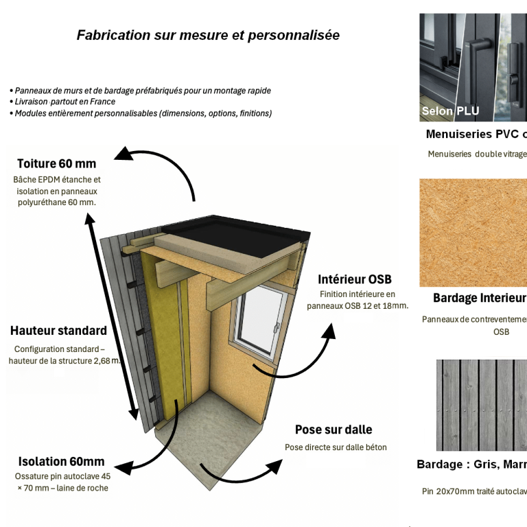 Notre expertise repose sur une méthode constructive optimisée, qui garantit une installation rapide, propre, sans fondations lourdes ni travaux invasifs. Chaque détail est anticipé en atelier, du bardage aux menuiseries, pour offrir un rendu clé en main hautement qualitatif. Grâce à notre maîtrise de l’ensemble du processus de la conception jusqu’à la pose, nous assurons à nos clients des délais courts, une grande fiabilité et un résultat à la hauteur de leurs attentes.